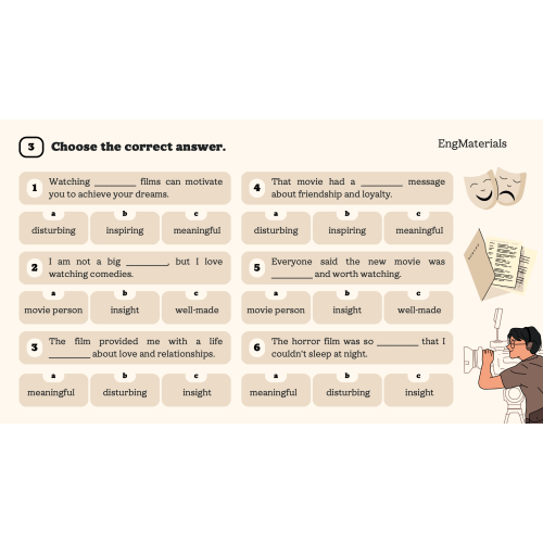 This lesson focuses on vocabulary and listening skills around the topic of films. It is supported with extra practice activities, crosswords, and online resources for listening.