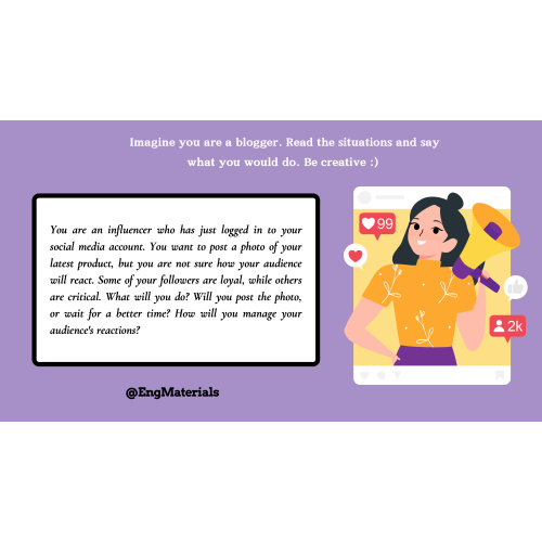 - One-minute talks on chosen social media topics: This provides extended speaking practice and allows for more in-depth exploration of specific themes.