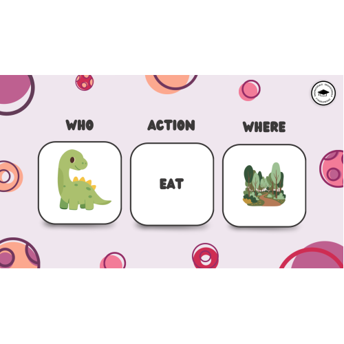 This sentence-building activity encourages students to practise grammar and speaking using a three-column table (Who – Action – Where). Learners create imaginative sentences by combining the elements and adapting the verbs to use different tenses.