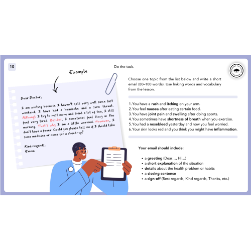 Learn and practise vocabulary for common symptoms.